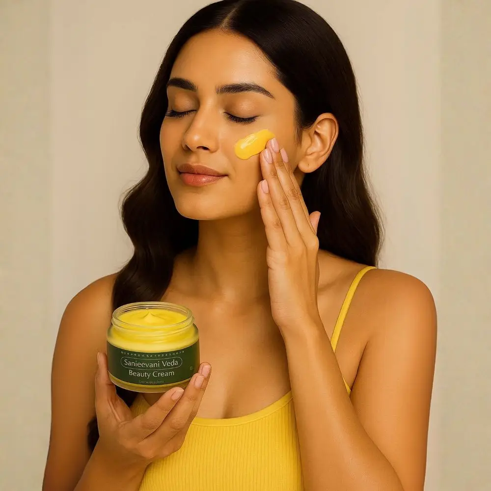 Sanjeevani Veda Beauty Cream is an opulent Ayurvedic product designed to nourish, rejuvenate, and protect your skin, revealing a radiant and youthful glow. Enriched with chamomile hydrosol and sesame oil infused with potent herbs like Sanjivni, Sandalwood Heartwood, and Bakuchi, this product deeply hydrates, enhances skin elasticity, and repairs damaged skin cells. Ideal for reviving tired, dull skin, Sanjeevani Veda Beauty Cream rejuvenates the complexion with a luminous, natural radiance, embodying the timeless beauty of nature’s finest ingredients.