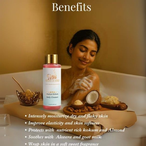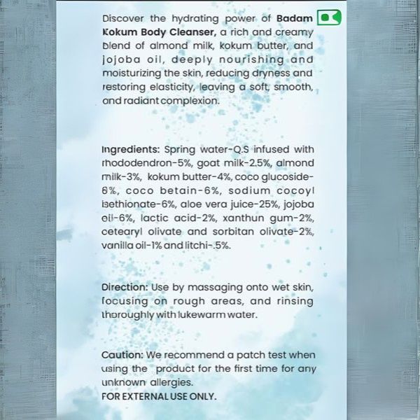 Discover the hydrating power of Badam Kokum Body Cleanser, a rich and creamy blend of almond milk, kokum butter, and jojoba oil, deeply nourishing and moisturizing the skin, reducing dryness and restoring elasticity, leaving a soft, smooth, and radiant complexion.