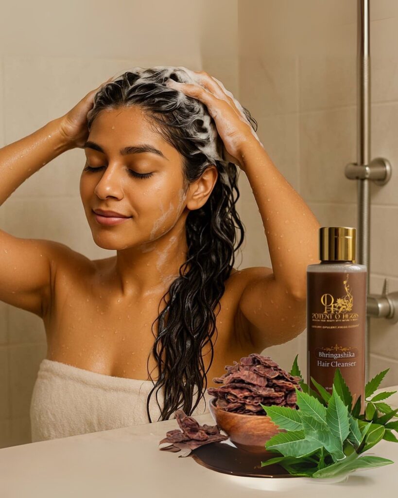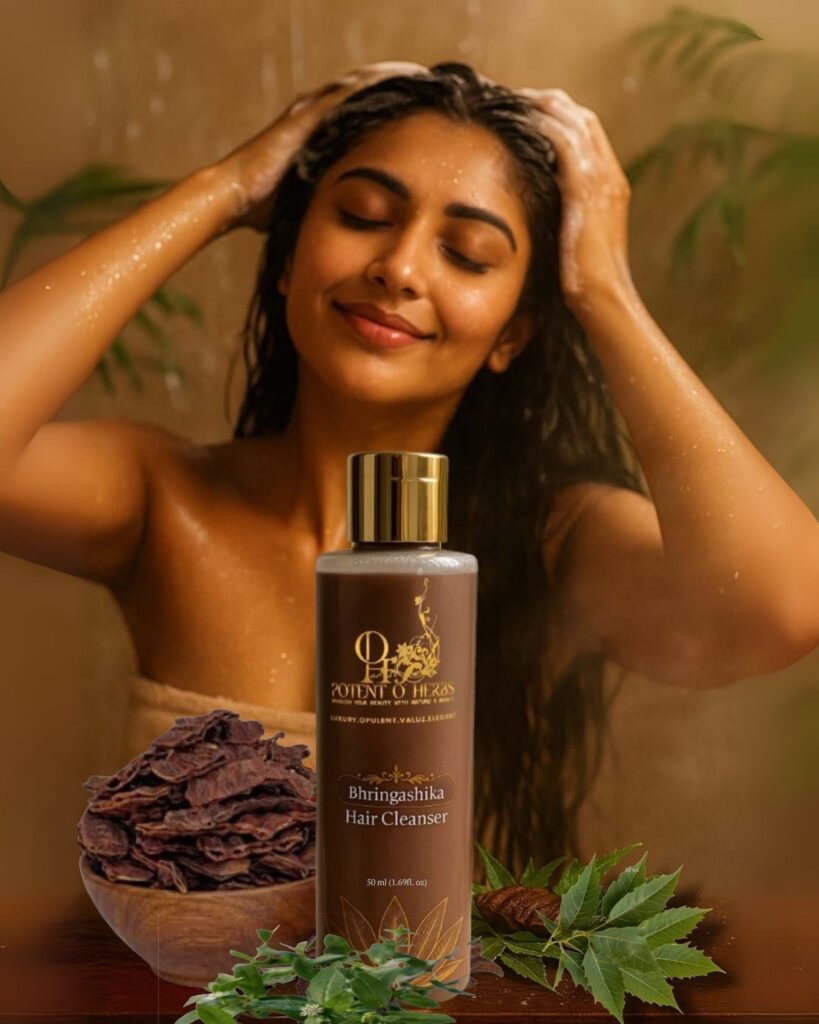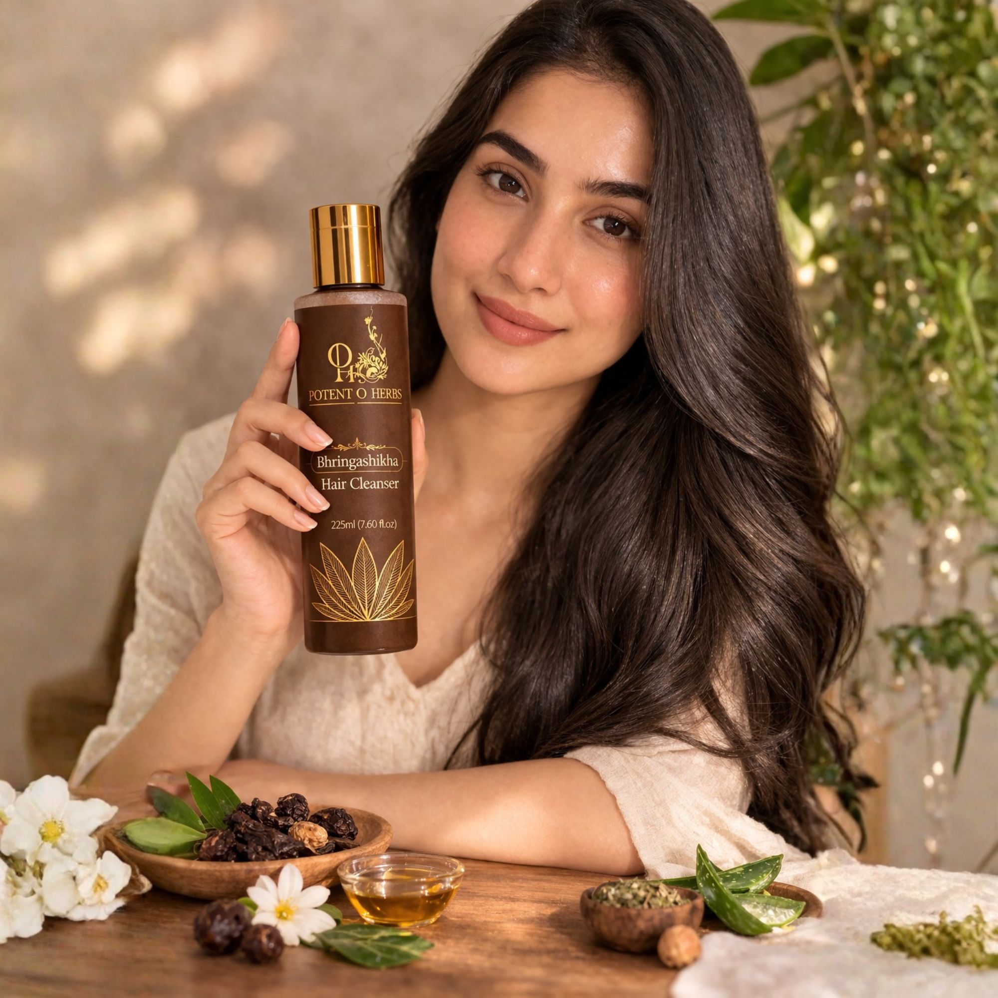 A strengthening Ayurvedic hair-cleansing blend steeped in Bhringraj, Shikakai, and Reetha — for hair that feels bouncier, fuller, and naturally vibrant.