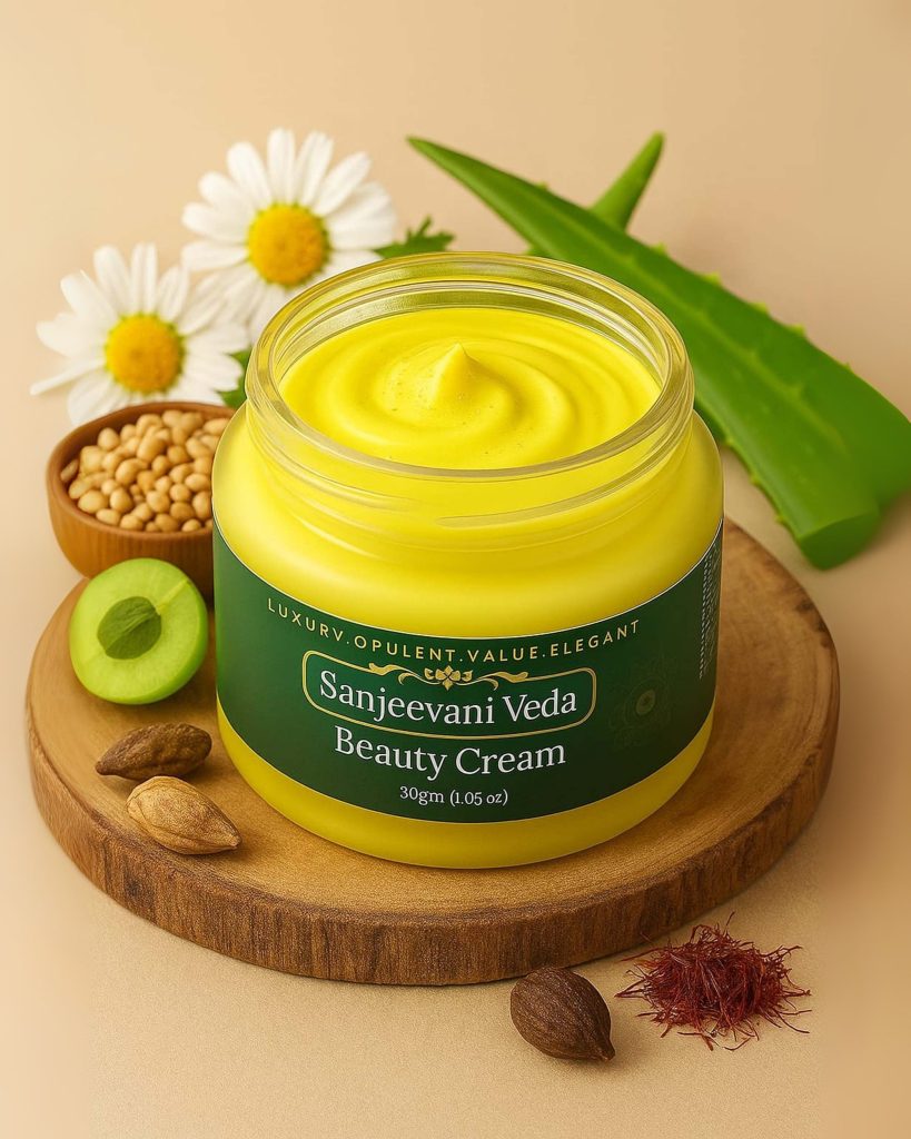 A rejuvenating Ayurvedic beauty cream powered by the sacred Sanjeevani herb — revered through history for its life-restoring essence. It deeply hydrates, enhances elasticity, and rekindles a youthful, healthy glow from within.